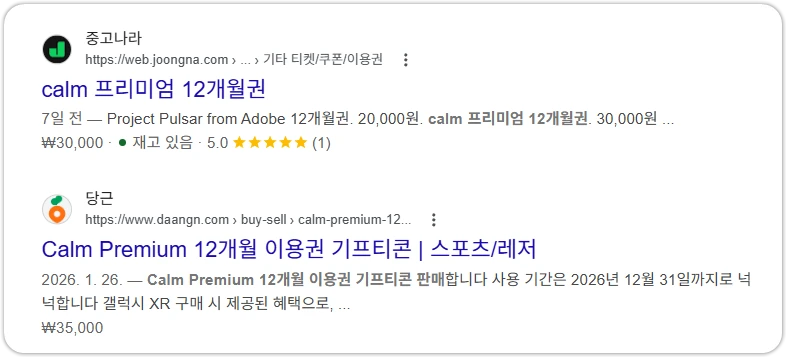 당근마켓, 중고나라에서 3만원~3만5천원 정도에 판매하나보네요. 그럼 Calm 프리미엄의 가치는 대충 3만원대로 생각하시면 되겠습니다.
