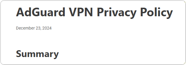そして「収集する正確なデータは使用中のAdGuard VPN製品によって異なります。」という文章で終わります。