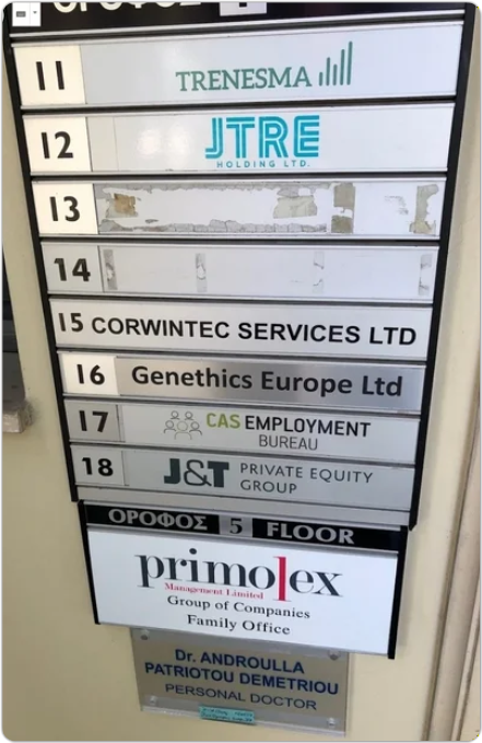 看板には見えません。住所が違うのかと思いそこに出ている会社名で検索してみると同じ建物なのは間違いないです。アドガードが2009年モスクワで設立され2014年キプロスに本社移転しましたが、上の写真はその後撮られたものと出るのですが.. 詳しく見ると一部だけ撮られたようでもあります。