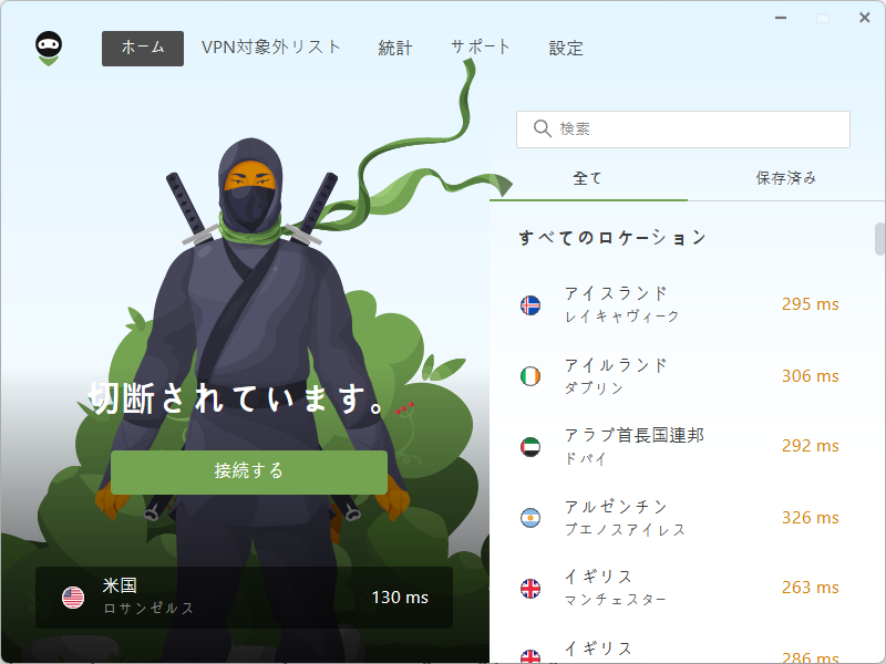 - サーバー : 59ヶ国70都市のサーバーが存在します。