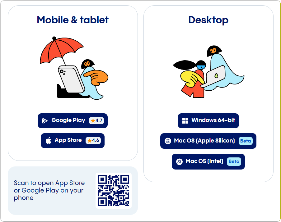Linuxウェブブラウザはまだ提供していません。Windows、macOS(Intel/Appleシリコン) スマートフォンはAndroid、iOS両方使用可能です。MacバージョンはまだBetaと書かれていますがMacBookで使用してみましたが特に不安定な感じは受けませんでした。2024年度からBetaでしたがなぜ未だに正式バージョンをアップロードしないのでしょうか?このような部分は会社が開発を止めたかもはや投資しないという印象を与える可能性があります。
