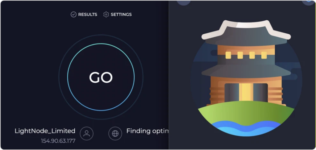 MacでVPNアプリを別途受け取ってつけておきました。可愛くてすっきりと作りましたね。左上速度テストボタンがあって押してみましたがテストが正確ではありません。英国、米国が最も適したサーバーだと出ます。物理的な距離が非常に重要なので普通は韓国が最も適していると出ますよね。
