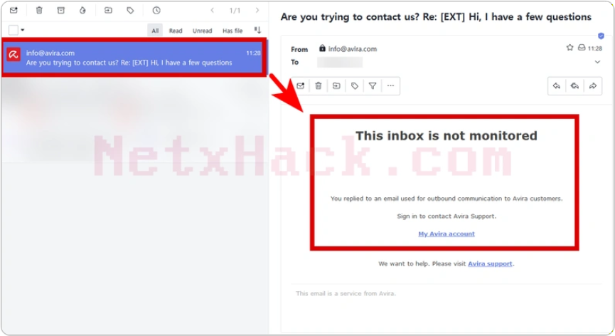 Avira顧客に送るアウトバウンドコミュニケーションに使用されるEメールに返信しました。