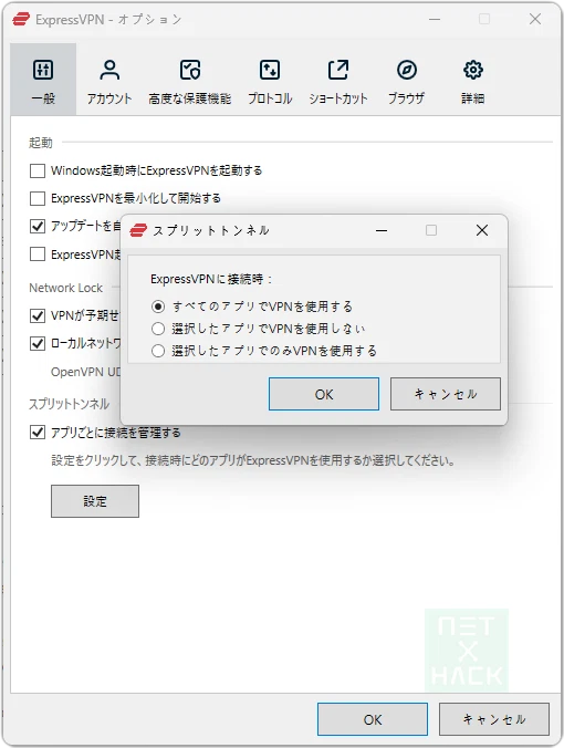 - Windowsを開始した時自動的にExpressVPNをオンにする