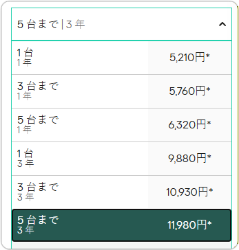 Kaspersky Plus価格です。有料アンチウイルスが無意味になった状況で結局hotspot shield VPN利用料金が多くの部分を占めます。私は家族と友人にWindows Defender(無料) + VPN(有料 – NordVPN、Surfsharkのどちらか一つ) 組み合わせを最も多く推薦しています。私もそのように使用中です。