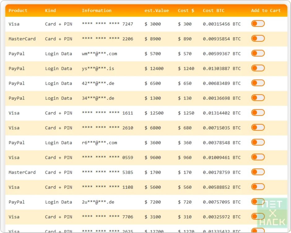 一般的に、IDやパスワードなどのログイン資格情報、メールアドレス、電話番号、クレジットカード番号、医療情報などが売買されています。モニタリングサービスは、独自のクローラーやスクリプトを使い、Tor Network内に存在するマーケットプレイス、ハッカーフォーラムなど、あらゆる違法サイトをスキャンしてデータを収集します。