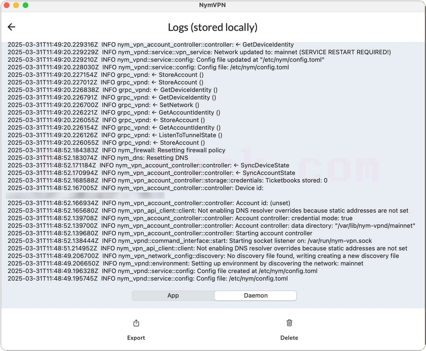 上記のようにAppやDaemonのローカルに保存されるログを見ることができるメニューです。