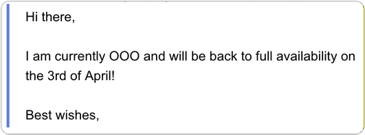 自動回答に「こんにちは、私は今000中だ.. 4月3日に戻る。」という自動回答が来ます。待ってみましょう。