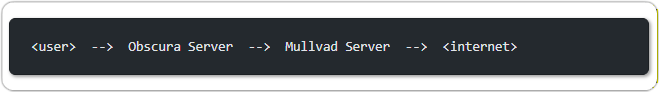通常のVPNのマルチホップは自社サーバー間で行われますが、Obscuraは「Obscura(中継)」+「Mullvad(出口)」という独立した2社のサーバーを組み合わせます。