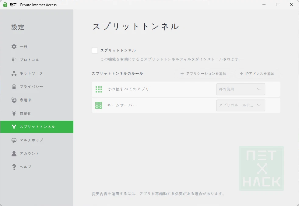 macOSでスプリットトンネリング機能を提供しないVPNアプリがかなりあります。PIAではサポートしています。