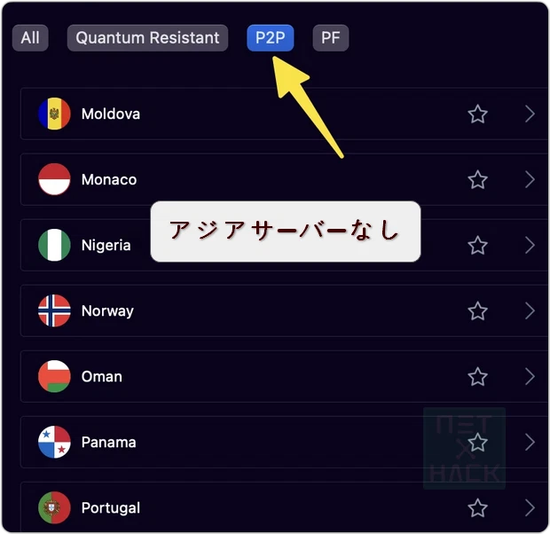 なんと.. トレントを利用できるアジアサーバーがありません。普通日本、シンガポールのどちらか一つでも提供するのに、PureVPNがアジア地域にP2Pサーバーを一つも割り当てなかったことは、アジアユーザーのP2P需要を諦めるという意味も同然です。