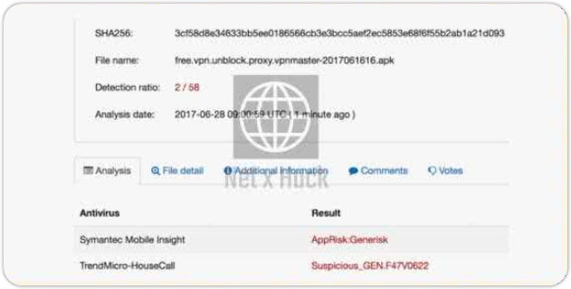 かつては VPNmaster の古いAPKファイルから、以下のようなものが検出されたこともあります。