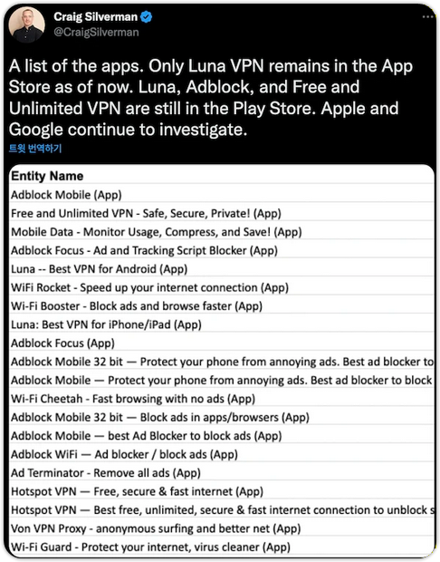 LunaVPNも問題になりました。VPNだけでなく、無料の広告ブロックアプリも個人情報を収集・販売しています。名前を変えて出てくるだけで、決して無くなりません。唯一の対策は「使わないこと」です。