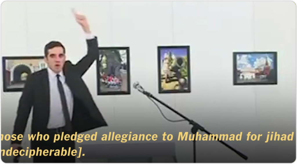 ‘터키인의 눈으로 본 러시아’라는 전시회가 터키에서 개막되었는데 당시 축사를 하던 중, 경호원을 위장한 터키의 경찰특공대 소속의 메블뤼트 메르트 알튼타시라는 사람이 권총으로 여러발 발사했습니다.