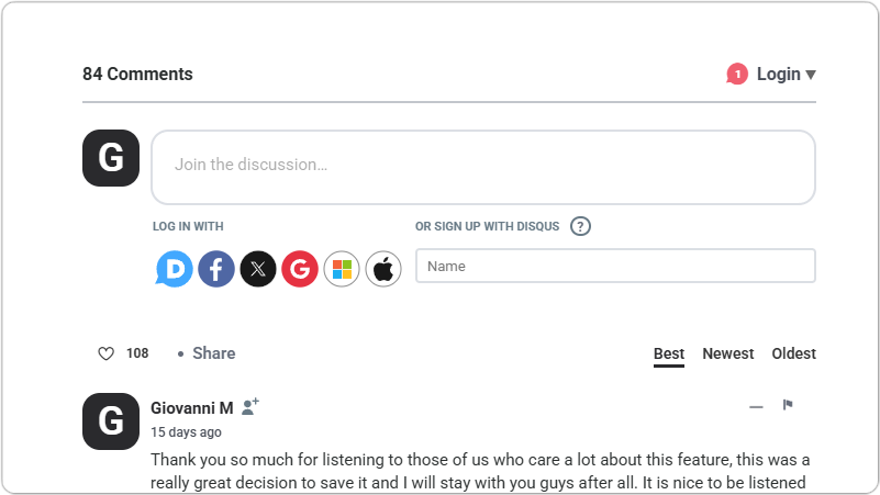 - David Silva (7 days ago): 고객 피드백을 경청해 주셔서 감사합니다! 이것이 훌륭한 회사/브랜드를 다른 모든 회사보다 돋보이게 만드는 요소입니다. 저의 경우, 이 기능은 제가 잃고 싶지 않은 매우 중요한 기능이었고 슬펐습니다. 이 덕분에 저는 앞으로도 오랫동안 여러분과 함께할 것입니다.