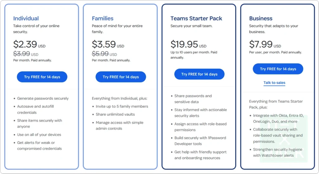 1Password 가격