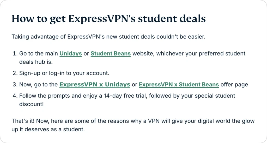 한국에서 ExpressVPN 학생 할인 접근성이 NordVPN처럼 좋진 않습니다.