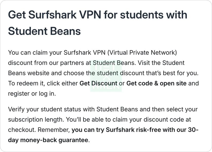 Surfshark 학생 할인은 Student Beans에서만 가능합니다.