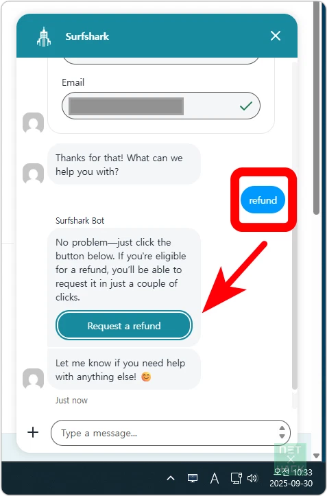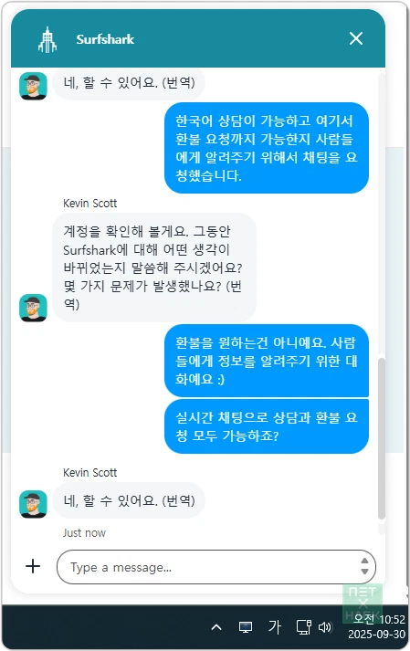 - 이메일: 대화가 싫고, 아직 시간이 넉넉하게 남았다면 support@surfshark.com로 이메일을 보내셔도 됩니다. 요즘엔 한글로 보내도 알아서 번역하더라고요.