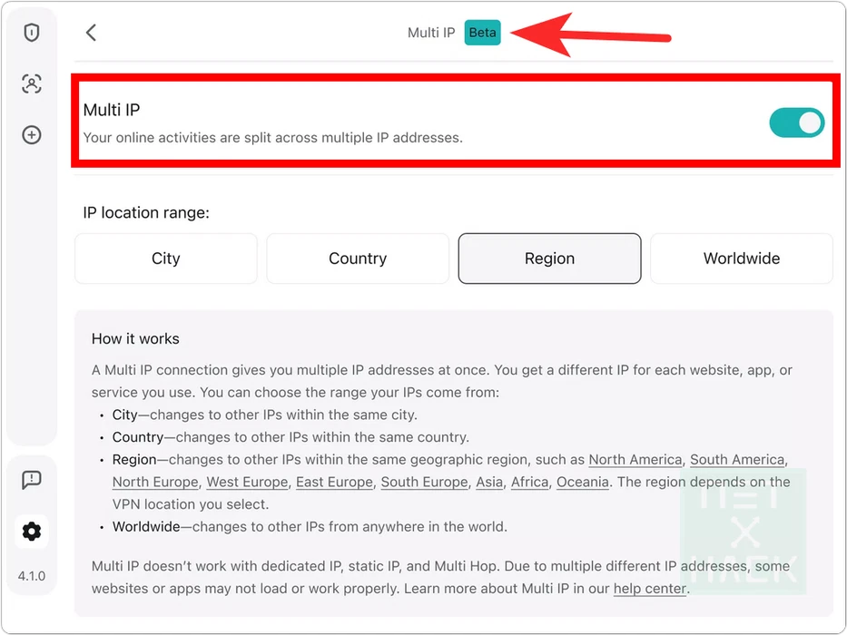 기존에 Rotating IP 기능이 있었어요. 5분에서 10분마다 자동으로 IP 주소를 바꿔서 익명성을 더 강화하는 기능이었는데요. 멀티 아이피는 좀 더 세부적이고 강력해보입니다.