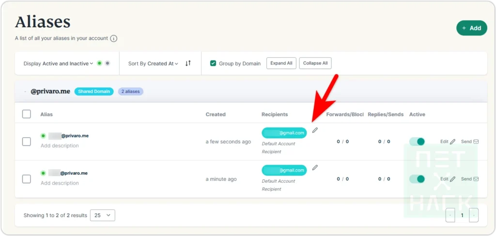 - Recipients: 이메일이 전달 될 내 메인 이메일 계정 등록