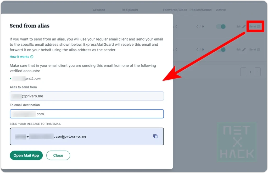 ExpressMailGuard는 실제 이메일 주소 대신 별칭(alias) 을 사용하여 스팸 및 피싱 메일을 줄이도록 설계되었습니다.