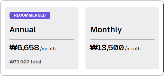 많이 비싼 가격입니다. 1년 구독은 뮬바드랑 비슷한 수준이지만, 한달 구독은 같은 서비스임에도 불구하고 왜 저렇게 비싸게 책정해놨는지 모르겠네요. 이름만 바꿔서 제공하는 서비스인 것을 모르는 사람들이 타겟인걸까요.