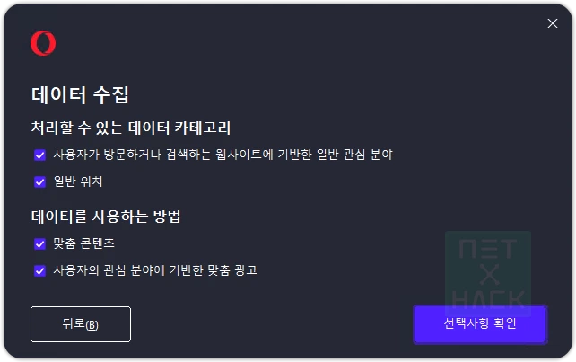 - 개인 정보 보호 정책에 Opera는 광고 및 마케팅 목적으로 데이터를 제3자에게 전달할 수 있는 권리에 대한 항목이 있었음