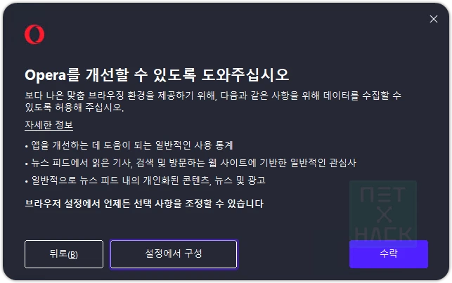 - 사용자의 기능 사용 정보 제공은 Opera 개선에 도움이 됩니다.