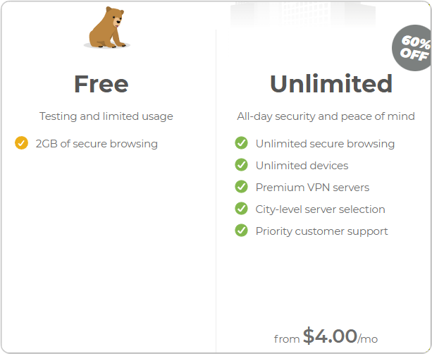 TunnelBear 가격 무료, 유료 요금제를 살펴봤습니다. 과거에 비해서 매우 단순해졌습니다. 일반 사용자는 Free or Unlimited 둘중 하나만 고르시면 됩니다. 나머지 하나는 회사 Team 전용입니다.