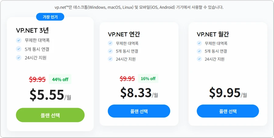결정적으로 가장 중요한 가격이.. 3년 플랜을 결제해도 무려 월 $5.55/월 입니다. 동시 접속은 5대만 허용되고요.