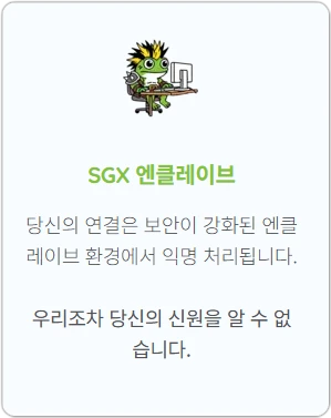 VP.net 홈페이지에서 반복에서 주장하는 차별점은 ‘SGX 엔클레이브‘인데 인텔 CPU에 내장된 기능입니다. 물리적(하드웨어) 수준에서 데이터를 보호하기 위한 ‘격리 영역’이예요. 이걸 통해서 고객님의 정보를 안전하게 보호하겠다.. 아래 조금 더 자세히 설명할게요.